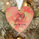 Célébrez le 29e anniversaire du mariage de grenat avec cet ornement élégant! Un élégant lettrage noir avec des confettis hexagonaux dorés sur un arrière - plan orange rougeâtre ajoute une touche mémorable à cette occasion spéciale et à cette étape extraordinaire. Personnalisez avec le nom du couple et la date du mariage. Reverse affiche un design identique. Utiliser tel quel ou remplacer par une photo. Ce design est optimisé pour les formes cercle, ovale, coeur et chemise. Design © W.H. Sim. Voir plus sur zazzle.com/expressionsoccasions