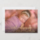 Moderne, Élégante Fille Faire-part de naissance 3 Photo Collage Cartes. Elégante, mignonne carte de modèle photo recto verso avec une (1) de votre photo préférée (pleine) sur le devant, avec une jolie fausse feuille d'or lettrée typographie superposition texte "introduction", sur dégradé noir. Facile à personnaliser avec le nom et les statistiques de naissance de votre bébé. Sur le support trois (3) photos sur l'aquarelle rose vif look arrière - plan.