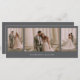 Elégant trois photo collage mariage carte de remerciements en gris. Customisez avec trois de vos photos, noms et date du mariage. Ajoutez votre message de remerciement à l'arrière. Pour obtenir de meilleurs résultats, utilisez des photos de mise en page verticale ou horizontale pour correspondre à la mise en page de cette carte. Besoin d'aide ? Contactez-moi, j'aimerais aider.