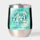 Faites du 44e anniversaire du mariage turquoise une célébration inoubliable avec ce tourbillon de vin en acier inoxydable commémoratif! Des lettrages élégants sur marbre jaune et bleu verdâtre arrière - plan ajoutent une touche mémorable à cette occasion spéciale et à cette étape extraordinaire. Customisez avec le nom du couple, la date du mariage et le message de félicitations. Reverse affiche un design identique. Design © W.H. Sim. Voir plus sur zazzle.com/expressionsoccasions