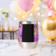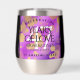 Faites du 47e anniversaire de mariage améthyste une célébration inoubliable avec ce tourbillon de vin en acier inoxydable commémoratif! Des lettres élégantes avec des confettis hexagonaux dorés sur un arrière - plan améthyste violet ajoutent une touche mémorable à cette occasion spéciale et à cette étape extraordinaire. Customisez avec le nom du couple, la date du mariage et le message de félicitations. Reverse affiche un design identique. Design © W.H. Sim. Voir plus sur zazzle.com/expressionsoccasions