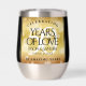 Faites du 50e anniversaire de mariage d'or une célébration inoubliable avec ce tourbillon de vin en acier inoxydable commémoratif! Des lettres élégantes avec des confettis hexagonaux sur un faux arrière - plan de feuille d'or ajoutent une touche mémorable pour cette occasion spéciale et un jalon extraordinaire. Customisez avec le nom du couple, la date du mariage et le message de félicitations. Reverse affiche un design identique. Design © W.H. Sim. Voir plus sur zazzle.com/expressionsoccasions
