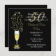 Chic invitation de fête du cinquantième mariage, faite en noir et or. Des images d'une coupe festive de champagne décorée d'un arc de ton or, sur la tige, et des étincelles qui sortent du haut, décorent le côté gauche de l'invitation noire. Le texte blanc et or est entièrement personnalisable pour répondre à vos besoins.