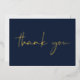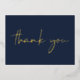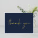 Elégante carte de remerciements bleu foncé pour votre 60ème anniversaire. L'avant présente "merci" dans un script moderne chic, rendu dans votre choix d'or, d'argent ou d'or rose authentique. Au verso, vous pouvez ajouter un message personnel et votre nom dans une police manuscrite.