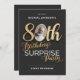 Élégant programme de fête surprise de 80e anniversaire. Un design élégant avec un texte clair et facile à lire, assurant que tous les détails importants sont transmis sans effort. L'ajout d'accents de fausse feuille d'or éblouissant sur fond de noir crée un effet visuel saisissant, ajoutant une touche de luxe à l'ensemble. Avec son esthétique moderne et son charme intemporel, cette invitation ouvre la voie à une fête mémorable, laissant vos proches enthousiastes et anticipant avec impatience les surprises qui vous attendent. Choisissez ce design pour faire une déclaration élégante et créer une expérience inoubliable pour vos invités.