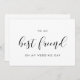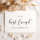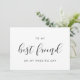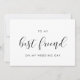Une carte cadeau simple et minimaliste pour écrire un message personnel et sincère pour votre meilleur ami le jour de votre mariage. Entièrement personnalisable avec vos couleurs préférées (texte et arrière - plan). Vous pouvez ajouter un message au dos ou le laisser vide si vous préférez écrire votre message à la main plus tard.