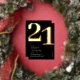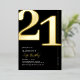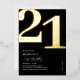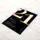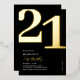 Véritable feuille noir et or invitations de fête du 21ème anniversaire avec le numéro '21' dans une grande police serif audacieuse, et un modèle invitation moderne qui est facile à personnaliser.