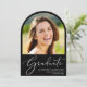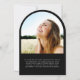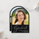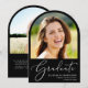 Faire-part de graduation noire en forme d'arc élégante avec la photo de la grade, "Graduate" dans un script blanc élégant, et leur nom, année de classe et école dans une typographie blanche simple et moderne. Ajoutez une photo supplémentaire et votre faire-part personnalisée au dos.