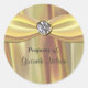 Élégant autocollant rond de plaque, avec des graphiques d'un arrière - plan en soie dorée. Un joli ruban de satin jaune doré traverse le dessus, avec un accent diamant, au milieu. Texte, Propriété de, Nom. Personnalisez cette belle plaque d'identification pour vous-même ou comme de beaux cadeaux.