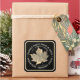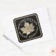Ajoutez votre nom d'entreprise, adresse, volume de sirop et grade de sirop d'érable. Élégante étiquette noire et or avec une feuille d'érable dorée. 1,5" carré parfait pour les bocaux d'une demi-pinte et les petites bouteilles de sirop d'érable.