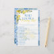Célébrez la maman-to-be avec une touche joyeuse et interactive en utilisant notre Matching Lemon Mediterranean "Who Knows Mommy Best" Game! Conçu pour s'adapter parfaitement à la collection Elegant Lemon Baby shower, ce jeu présente des citrons d'aquarelle vibrants, de délicats accents floraux et un arrière - plan intemporel d'inspiration carrelée bleue et jaune qui saisit le charme de la Méditerranée. Les clients s'amuseront à répondre à des questions sur la future maman, à éclater de rire et de bons moments en testant leur connaissance. Que vous soyez en train d'organiser une fête de jardin de printemps, une douche d'été ou un événement à thème italien, ce jeu élégant ajoute une touche personnelle parfaite.