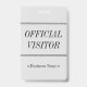 Ce design de badge classe comprend le message "OFFICIAL VISITOR", ainsi qu'un nom de société personnalisable ou tout autre message personnalisé. Un badge comme celui-ci pourrait être utilisé pour indiquer que quelqu'un dans un lieu de travail ou une entreprise est un invité/visiteur autorisé. [~Z0000307]
