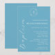 Cette invitation au baptême minimaliste dégage élégance et simplicité, parfaite pour une célébration sacrée. Le design bleu et blanc présente le mot Baptême en calligraphie de script gracieux, ajoutant une touche de sophistication. Au centre, une délicate croix blanche est encadrée par une couronne blanche de feuillage, symbolisant la paix et la foi. Le design sobre, associé à des accents subtils, souligne l'importance de cette journée spéciale, ce qui en fait un choix idéal pour inviter des proches à assister et célébrer une belle étape dans le voyage spirituel de votre enfant.