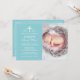 Carte photo d'invitation Baptême avec design tourbillon élégant en arrière - plan bleu. Facile à customiser avec votre propre texte.