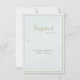 Elégante carte Baptême RSVP pour bébé Célébrez le baptême joyeux de bébé avec cette carte RSVP magnifiquement conçue. Conçue avec une esthétique intemporelle et élégante, cette carte présente une palette de couleurs douce et apaisante qui complète parfaitement l'occasion sacrée. L'aménagement propre et moderne assure une mise en évidence claire de tous les détails essentiels, ce qui le rend à la fois fonctionnel et visuellement attrayant. Imprimée sur papier de qualité supérieure, cette invitation n'est pas seulement un moyen pratique de partager les détails de votre événement, mais aussi un gardien chéri pour les années à venir. Que vous planifiez un baptême traditionnel ou contemporain, cette carte est le choix idéal pour donner le ton à votre journée spéciale. B009 Design : Elégante et moderne palette de couleurs : pastels doux aux accents subtils Polices : Serif classique pour une touche intemporelle, jumelé à sans-serif propre pour la lisibilité