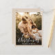 Carte de Noël photo moderne avec un design simple et minimal avec "Joyeux Noël" dans une élégante typographie de script sur votre photo préférée entourée d'une bordure nette beige clair. L'avant a une superposition de dégradé pour aider le texte à se démarquer, qui peut être supprimé dans l'outil d'édition de conception, si vous le souhaitez. Le dos a un collage photo avec trois photos avec votre message personnalisé.