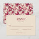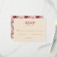 This elegant wedding RSVP card features a minimalist design with a soft beige background and deep maroon accents. The layout is clean and sophisticated, with bold typography for the "RSVP" heading and clear response options labeled "Joyfully Accepts" and "Regretfully Declines." A decorative horizontal line adds a touch of refinement, while ample negative space enhances readability. Perfect for formal events, this card conveys a sense of anticipation and formality, making it ideal for couples seeking a classic yet modern invitation style.
