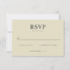 This wedding RSVP card features a minimalist and elegant design with a soft beige background, creating a sophisticated and neutral canvas. The layout includes bold uppercase serif typography for the "RSVP" heading, complemented by clean sans-serif fonts for response options and guest details, ensuring clarity and readability. A delicate cursive script adds a personal touch, while ample negative space enhances the modern aesthetic. Perfect for formal events, this card exudes refinement and simplicity, making it an ideal choice for couples seeking a chic and uncluttered invitation suite.
