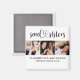 Un magnet photo collage de meilleurs amis avec la place pour 3 photos. Décoré avec les mots "soeurs de l'âme" dans une police de caractères avec un coeur. Personnalisez-le avec 3 photos de vous et de votre BFF et de vos noms. Fait un cadeau mignon pour la fête des Galentines, les anniversaires, ou toute occasion. Conçu pour vous par Blackberry Boulevard.