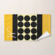 modern stylish black beige and yellow polka dots monogram name bath towel set .home decor