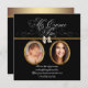 Belle photo bébé et photo actuelle en noir et or Quinceanera invitation. Cette invitation à la Quinceanera en noir doux présente un élégant ruban d'or et un arc avec des cadres ovales d'or pour deux images de votre belle fille - l'une comme un bébé et l'autre comme elle est maintenant. Customisez cette élégante photo en noir et or Quinceanera invitation en choisissant simplement le bouton orange "Customisez-le !" pour commencer à ajouter vos photos, détails de l'événement, style de police, taille et couleur de police, et libellé. Veuillez noter que tous les modèles de cartes et d'invitations que vous trouverez sur Zazzle sont des graphiques imprimés sans bijoux, arcs, surélevés, gaufrés, ou des pièces ou pièces ajoutées.