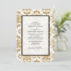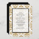 Ce design est doté d'un élégant motif vintage doré. Le texte noir est encadré d'une bordure noire et d'un arrière - plan blanc opaque. Le motif en or damassé se trouve élégamment dans l'arrière - plan. Le mélange des couleurs noir et or crée un style sophistiqué, tendance et chic. Conception élégante d'invitation de mariage avec des éléments modernes. La configuration simple de la typographie lui donne un style distinct. L'envers du design est noir avec du texte en or. Des articles de papeterie mariage correspondants et d'autres formats d'invitation de mariage sont également disponibles.