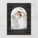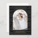 Cette carte postale moderne d'invitation de remise de diplômes de photographie comporte un élégant arrière - plan noir et une grande typographie avec une arche de photo géométrique avant, et les détails de la fête de remise de diplômes et l'adresse de retour sur le dos.