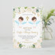 Elégant Blanc Floral Twin Boy Baptism Invitation