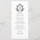 Monogram Crest noir et blanc, menu mariage. Cimetière d'art baroque Regency-Era d'inspiration vintage. Caractéristiques, un élégant design de typographie noir et blanc propre.