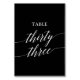 Ce blanc élégant sur table noire 33 numéro de table est parfait pour un mariage simple. Le design neutre présente une carte minimaliste décorée de typographie romantique et fantaisiste. La carte s'imprime à l'avant et à l'arrière (double face). Les autres numéros de tableau de la collection sont vendus séparément.