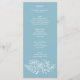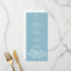 Ajoutez cette touche spéciale à votre mariage grâce à ces magnifiques menus. Ce design est composé d'un arrière - plan bleu, d'une typographie classique blanche et d'un lettrage à la main agrémenté d'un beau bouquet floral.