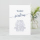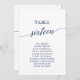 Ces élégantes cartes marines bleues numéro 16 sont parfaites pour un mariage simple. Le design neutre présente une carte minimaliste décorée de typographie romantique et fantaisiste. La carte s'imprime à l'avant et à l'arrière (double face).