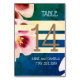 Cartes de table élégantes, modernes, simples avec fleurs violettes et blanches photo sur arrière - plan bleu avec lignes.