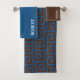 elegant brown and blue abstract pattern custom name bath towel set .