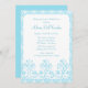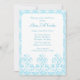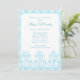 Commencez votre événement directement avec notre invitation à la douche nuptiale avec un beau cadre bleu doux sur le damas bleu. Couleur bleu tendance sur bleu. Customisez simplement notre invitation avec vos informations de mariage et vous êtes tous prêts à partir. © Mujka Design Inc