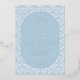 This elegant wedding invitation features a symmetrical layout with a central oval focal point, set against a light blue damask pattern background. The design uses a harmonious color palette of soft blues and incorporates classic serif typography for a formal touch. Decorative flourishes and dots enhance the sophisticated aesthetic, while customizable text fields allow personalization for names, dates, and locations. Perfect for couples seeking a refined and timeless look to celebrate their special day.