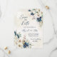 A gorgeous save the date card for your wedding with elegant navy blue and teal watercolor flowers and winter greenery.