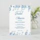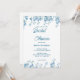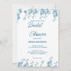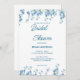 Célébrez la future mariée avec cette élégante invitation à la douche nuptiale à fleurs bleues ! Doté de délicates fleurs bleues suspendues sur un arrière - plan blanc doux, ce design dégage élégance et charme. La police de caractères stylisée met en évidence les détails clés, ce qui en fait un choix parfait pour une célébration de la douche nuptiale classe et intemporelle. Entièrement personnalisable pour correspondre aux détails de votre événement, cette invitation donne le ton parfait pour un rassemblement mémorable.