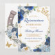 Celebrate a special milestone with this elegant Quinceañera invitation featuring blue and white florals, gold butterflies, and modern geometric accents. Perfect for honoring a young womans fifteenth birthday, this stylish design blends sophistication with festive charm. Customize with event details to create a memorable keepsake for family and friends. Ideal for formal gatherings, this invitation sets the tone for a beautiful celebration.