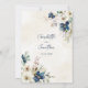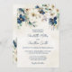 A sophisticated invitation for your winter wedding with elegant navy blue and soft turquoise watercolor flowers with winter greenery and modern handwritten style text.
