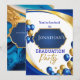 Célébrez la grande journée de votre diplômé en style avec cette élégante invitation de remise de diplômes en bleu et en or! Avec un design royal avec des ballons dorés et bleus brillants, des courbes luxueuses, cette invitation est parfaite pour honorer la réussite de votre diplômé. La présentation attrayante comprend un cadre personnalisable pour les détails de votre événement, ce qui facilite la personnalisation pour le lycée, l'université, ou toute célébration de graduation. Idéal pour l'envoi postal ou les invitations numériques !
