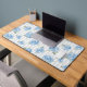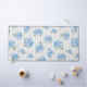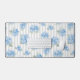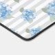 Elegant Blue Hydrangea Pattern Gray Stripe Desk Mat. Bring the timeless elegance of a coastal summer to your space with this delicate hand created art of hydrangea floral overlaid on a classic gray ticking stripe. Perfectly blending high-end garden aesthetics with a breezy East Coast vibe, this desk mat offers a sophisticated touch to your home or office space. Hydrangea design is original to Cross Fox Design.