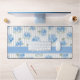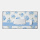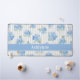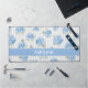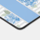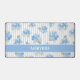Elegant Blue Hydrangea Sage Green Gray Stripe Name Desk Mat. Bring the timeless elegance of a coastal summer into your home or office with this delicate hand created art of hydrangea floral with sage green leaves overlaid on a classic gray ticking stripe. Perfectly blending high-end garden aesthetics with a breezy East Coast vibe, this desk mat offers a sophisticated touch for your space. Hydrangea design is original to Cross Fox Design.