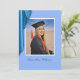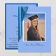 A unique card with an elegant blue, satin color scheme. Similar blue background on the back of the card containing party details. Suitable for a high school or college graduation. The photo and all text are easily changed with the template. Selecting “Personalize this design” offers you several edit options to easily change the text (wording, plus type font, color, size, position) and to edit the design elements. You may also want to scroll down to the section “Transfer design to a product” for a few suggestions about other items this design can be used on. NOTE: there are online sources that allow you to create a free graduation website. Just do a search for it and choose the one you want.