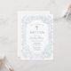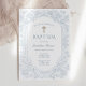 A simple, formal gold cross sits above your event details. The minimalist typography and blue color palette make this christening invite the perfect choice for a baby boy.