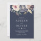 Invitations amis et famille à votre cérémonie de mariage avec cette élégante invitation, avec des fleurs d'aquarelle élégantes sur un arrière - plan de marine sombre.