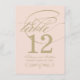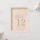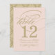 REMARQUE : Chaque carte de numéro de table doit être customisée et ajoutée individuellement au panier. Elégante carte rose pastel avec un monogramme fleuri avec des notes de calligraphie dorée au champagne et des accents de design de défilement, ainsi qu'un motif damassé au dos de la carte.