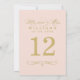 REMARQUE : Chaque carte de numéro de table doit être customisée et ajoutée individuellement au panier. La carte élégante comprend un monogramme fleuri Mr et Mrs avec une calligraphie dorée au champagne et des accents de design de défilement. Design à deux côtés. Pour modifier la couleur arrière - plan (rose pâle), allez à Personnaliser / Édition / Arrière - plan.
