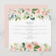 Ce menu du dîner présente d'élégants flancs blancs et roses d'aquarelle avec une combinaison de polices simple et intemporelle. C'est le menu parfait pour le couple classique romantique mais il peut être modifié pour convenir à tout événement que vous avez en tête.