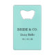 Give your guests a practical and stylish keepsake with our personalized turquoise bottle openers! Custom engraved with your names, wedding date, or a special message, these bottle openers make a thoughtful and lasting wedding favor. A perfect blend of functionality and sentiment, they’re sure to be a hit at your celebration. These wedding bottle openers are a part of a Bridal Shower Wedding Collection with coordinating items available.